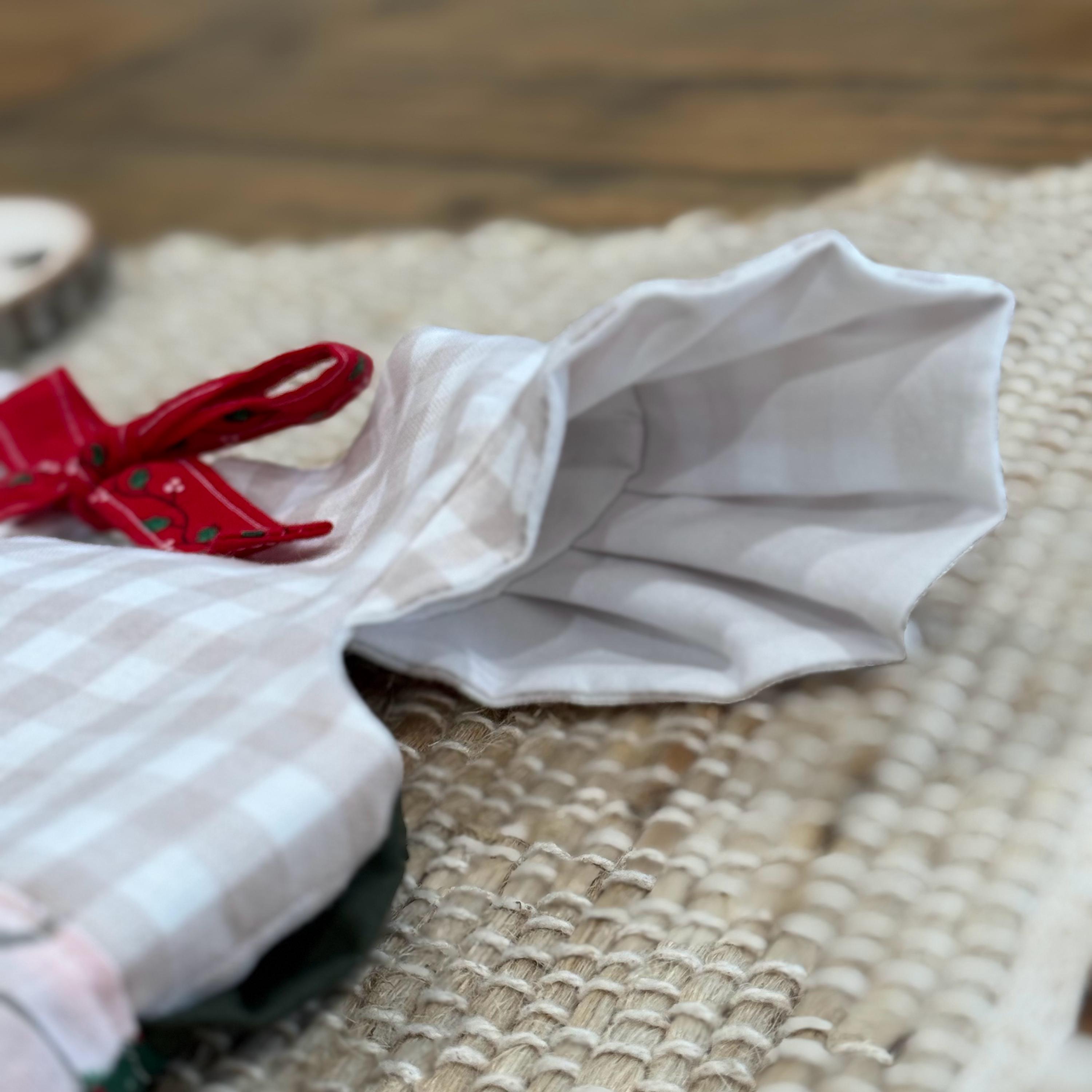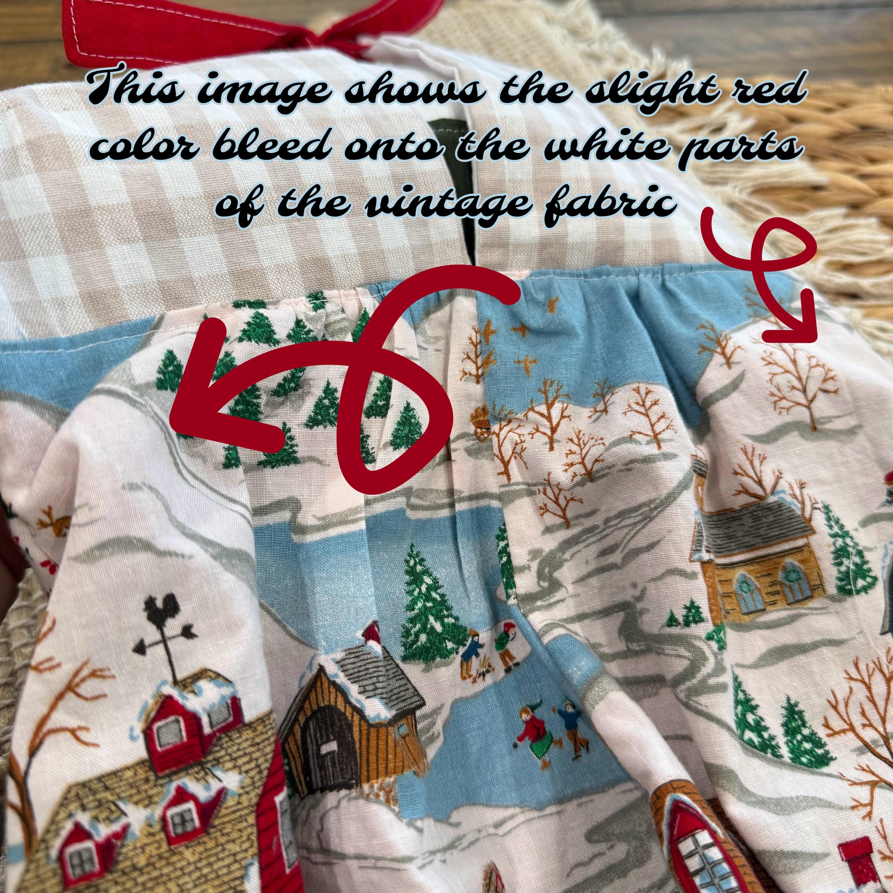 *Due to me using old christmas fabric, there is a slight red color run on some parts of the christmas fabric, giving it a slight pinkish look in some areas. This does not compromise the quality of the garment but I have brought the cost down on this item due to this. I did not want this beautiful fabric to go to waste all because of that :)