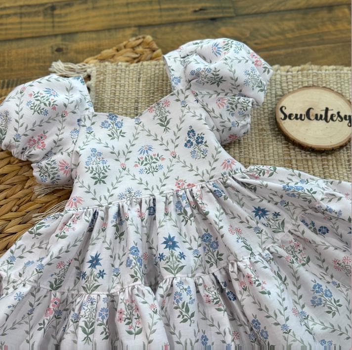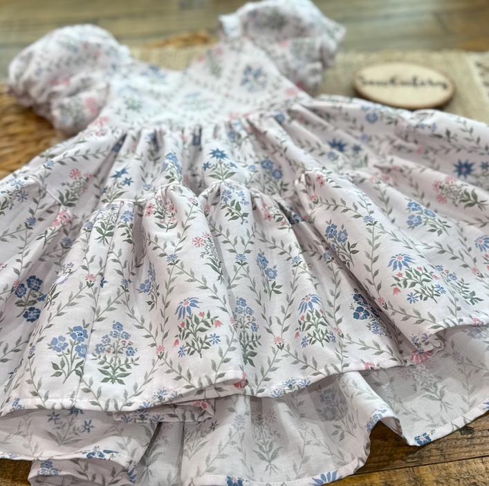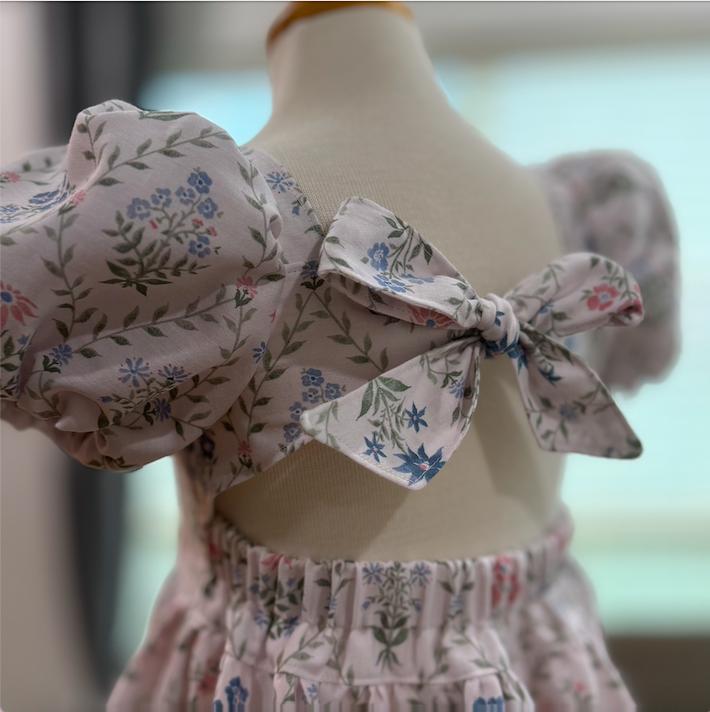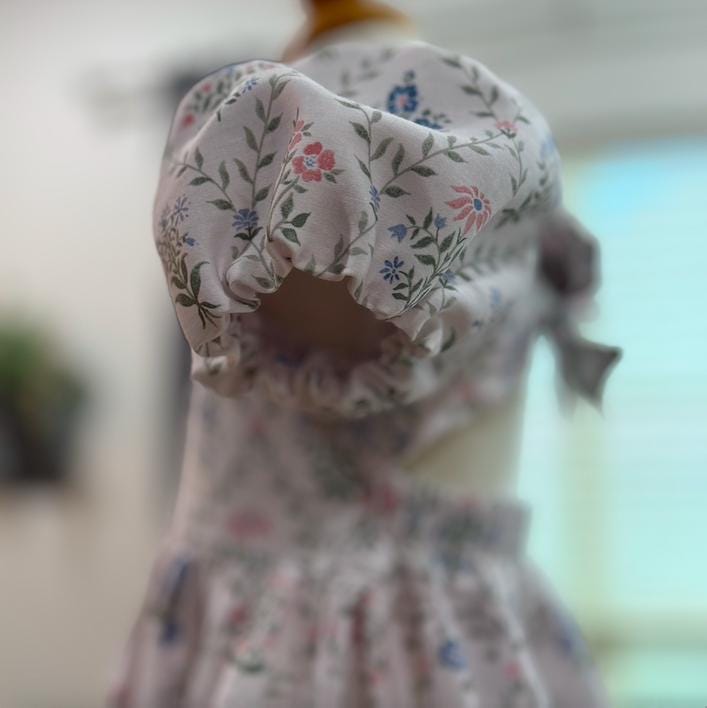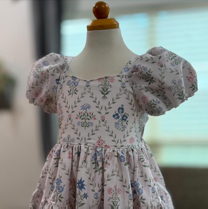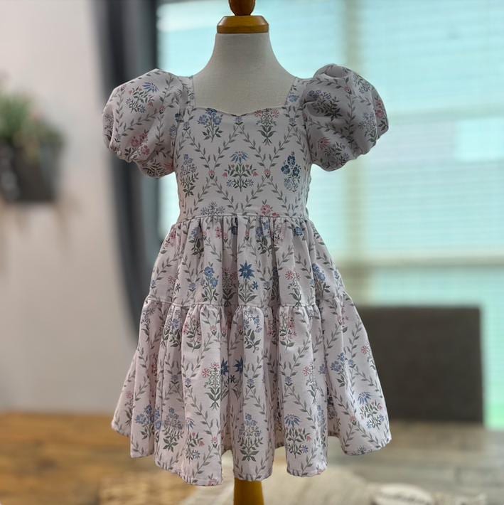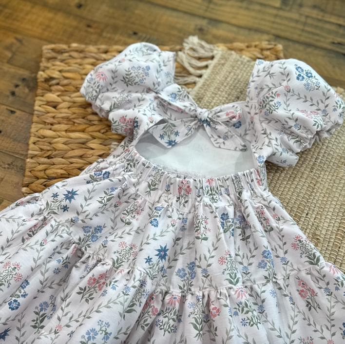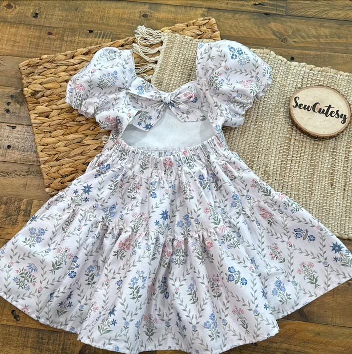 Imagine your sweet little one twirling into spring in this beautiful floral dress. This style dress is one of my favorites - featuring a bow tie back, elastic on the back for a good fit and puff sleeves that are lined. The skirt has the most perfect amount of fullness to it for the most perfect twirl. These will be made to order in size 1 year up to 6 years. Size chart will be in the photos :) Seriously the sweetest cotton spring dress!